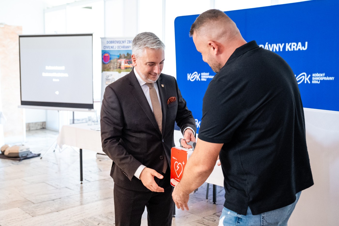 Po vyhodnotení všetkých žiadostí a podmienok sme dostali zoznam 22 obcí, ktoré splnili kritéria pre získanie defibrilátora. V roku 2025 sme mohli týmto život zachraňujúcim prístrojom podporiť nasledujúce obce : Gemerská Panica, Silica, Rakovnica, Rudná, Roštár, Nižná Slaná, Odorín, Matejovce nad Hornádom, Žakarovce, Rešica, Sokoľ, Budimír, Košická Polianka, Bohdanovce, Tušická Nová Ves, Ptrukša, Vyšný Medzev, Markušovce, Ochtiná, Skároš, Ďurďošík a Kluknava. Okrem samotného defibrilátora obdržali samosprávy aj skrinku na externé uloženie AED a tabuľu. Veľkou výhodou je, že novodistribuované AED majú viaceré jazykové mutácie, ktoré sú pridanou hodnotou pri samotnom použití, navyše defibrilátori sú určené ako pre dospelých tak pre deti. Súčasťou odovzdania AED bolo aj odborné zaškolenie pri odovzdávaní, ktoré previedlo zástupcov dobrovoľných hasičských zborov obcí a samospráv celým procesom používania prístroja. Po skúsenostiach z minulého roka kedy vieme, že AED niesú len bezvýznamná skrinka, ale prístroj, ktorý už viackrát v kraji zachránil život. Sme preto veľmi, že sa nám podarilo do územia dostať viac týchto život zachraňujúcich prístrojov.